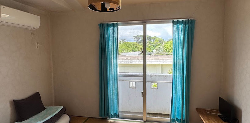 布団を敷いてゆったりとくつろげる六畳のお部屋で、窓からは西表島の自然の光や風を感じていただけます。